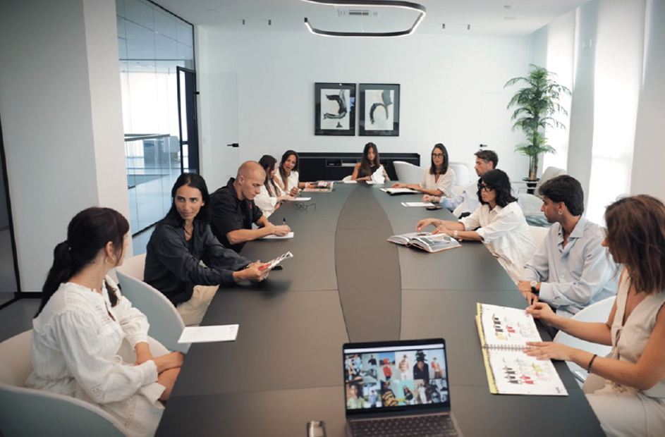 Stilisti, grafici e creativi lavorano in stretta sinergia con un apparato produttivo integrato, in grado di seguire ogni fase del processo: